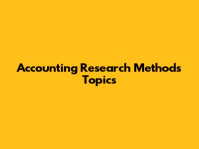 Accounting Research Topics: Ideas & Methods