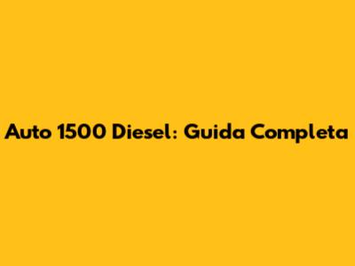 Auto 1500 Diesel: Guida Completa