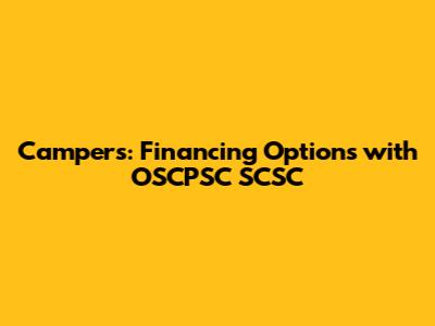 Campers: Financing Options With OSCPSC SCSC