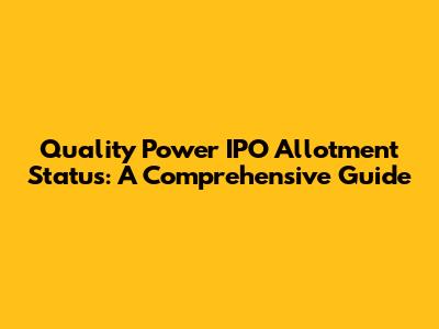 The registrar for the Quality Power IPO is responsible for processing the applications and managing the allotment. They usually provide a dedicated page on their website where you can check the allotment status. Here’s how to do it: