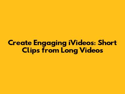 Creating engaging iVideos from longer video content is a fantastic way to repurpose your material, capture attention on social media, and cater to viewers with shorter attention spans. In today's fast-paced digital world, people often prefer consuming bite-sized content that they can quickly digest while on the go. By transforming your longer videos into shorter, impactful clips, you can reach a wider audience and maximize the value of your existing video assets. This process isn't just about cutting down the length; it's about strategically identifying and highlighting the most compelling moments, crafting a narrative that stands on its own, and optimizing the clip for maximum impact. Think about it – you've already invested time and effort in creating the original video. Why not squeeze every last drop of potential out of it by creating multiple shorter versions tailored for different platforms and purposes? The key is to approach this task with a clear understanding of your target audience, the platform you're publishing on, and the specific message you want to convey. Whether it's a captivating highlight reel, a concise tutorial, or a funny snippet, a well-crafted iVideo can significantly boost your online presence and engagement. So, let's dive into the nitty-gritty of how to create these engaging iVideos, covering everything from planning and editing to optimization and promotion.