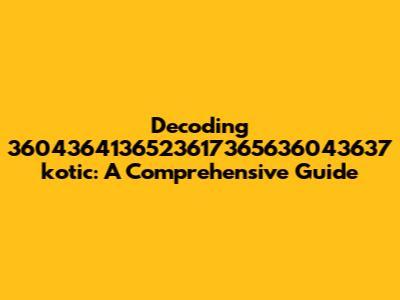 Decoding 3604364136523617365636043637 Kotic: A Comprehensive Guide