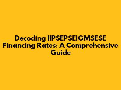 Navigating the world of IIPSEPSEIGMSESE financing rates can feel like trying to decipher an ancient code. But don't worry, guys! We're here to break it down in a way that's easy to understand, even if you're not a financial whiz. In this article, we'll explore what IIPSEPSEIGMSESE financing is all about, how these rates are determined, and what factors you should consider before diving in. Understanding the intricacies of financing rates is crucial for making informed financial decisions, whether you're a business owner seeking capital or an individual looking to invest. So buckle up, and let's get started on this enlightening journey. We'll cut through the jargon and provide you with the knowledge you need to confidently navigate the complex landscape of IIPSEPSEIGMSESE financing. Remember, knowledge is power, especially when it comes to your finances. The goal is to equip you with the ability to assess different financing options and choose the one that best aligns with your specific needs and financial goals. That includes understanding the fine print and potential risks associated with IIPSEPSEIGMSESE financing. We’re going to give you the insights you need to make smart choices. This comprehensive exploration into IIPSEPSEIGMSESE financing rates aims to provide you with a solid foundation for future financial decisions. It's all about empowering you to take control and make informed choices that will benefit you in the long run. After all, managing your finances wisely is a key step toward achieving your dreams. So, let's get started and unlock the secrets of IIPSEPSEIGMSESE financing rates.