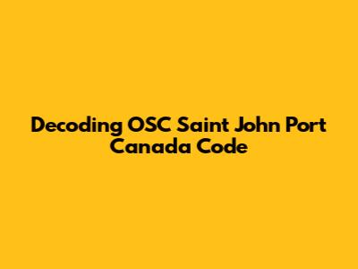 Decoding OSC Saint John Port Canada Code