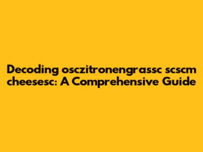 Decoding 'osczitronengrassc Scscm Cheesesc': A Comprehensive Guide