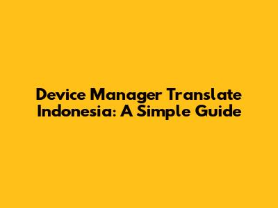 Device Manager In Indonesian: A Simple Guide