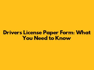 Driver's License Paper Form: What You Need To Know