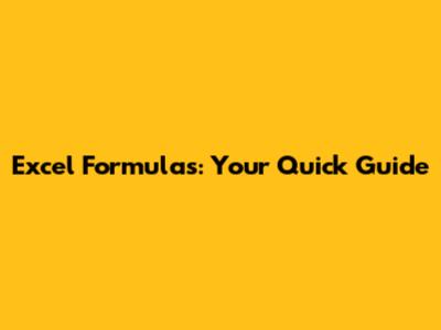 Excel Formulas: Your Quick Guide