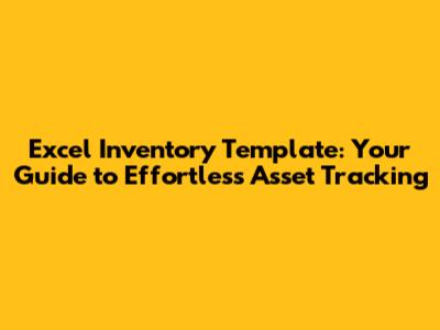 Excel Inventory Template: Your Guide To Effortless Asset Tracking