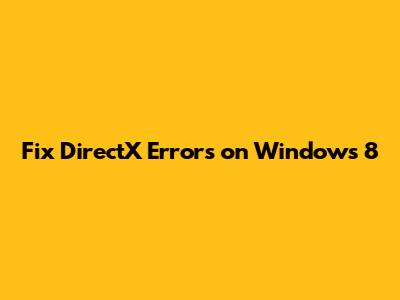 Fix DirectX Errors On Windows 8