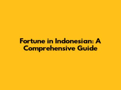 Fortune In Indonesian: A Comprehensive Guide