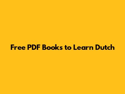 Free PDF Books To Learn Dutch