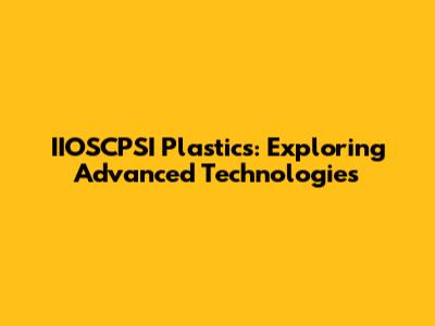 IIOSCPSI Plastics: Exploring Advanced Technologies