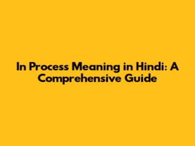 In Process Meaning In Hindi: A Comprehensive Guide
