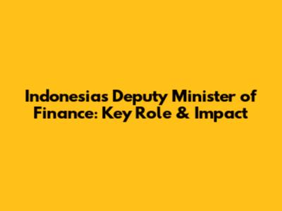 Indonesia's Deputy Minister Of Finance: Key Role & Impact