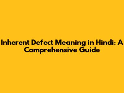 Inherent Defect Meaning In Hindi: A Comprehensive Guide