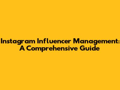 Instagram Influencer Management: A Comprehensive Guide