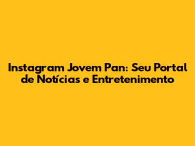 Instagram Jovem Pan: Fique Por Dentro Das Notícias E Mais!