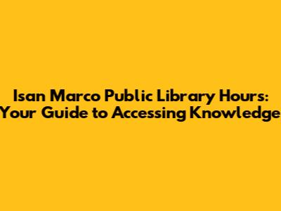 Hey guys! Are you trying to figure out when the Isan Marco Public Library is open? You've come to the right place! Knowing the library hours is super important, whether you're planning a study session, want to browse the shelves for a new book, or need to use the library's resources. This guide provides you with all the details you need about the Isan Marco Public Library's opening hours, plus some extra tips to make your visit even better.