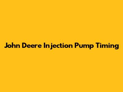 John Deere Injection Pump Timing Guide