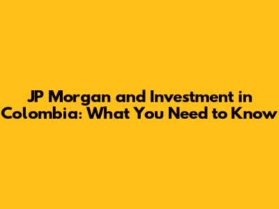 JP Morgan And Investment In Colombia: What You Need To Know