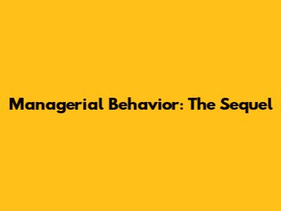 Managerial Behavior: The Sequel