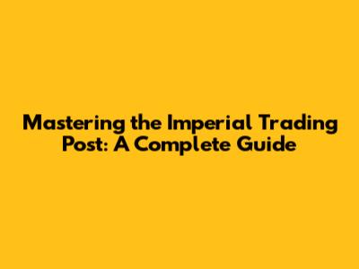 Mastering The Imperial Trading Post: A Complete Guide