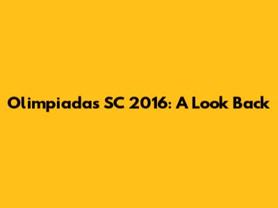 The Legacy of Olimpiadas SC 2016: Impact and Lasting Impressions
