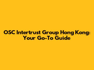 OSC Intertrust Group In Hong Kong: Your Go-To Guide