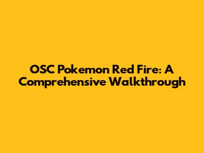 OSC Pokemon Red Fire: A Comprehensive Walkthrough