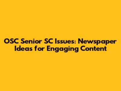 OSC Senior SC Issues: Newspaper Ideas For Engaging Content
