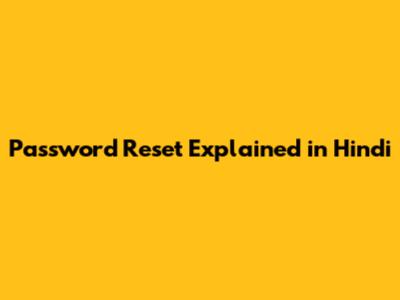 Password Reset Explained In Hindi