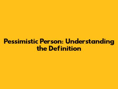 Pessimistic Person: Understanding The Definition