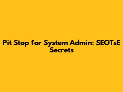 Pit Stop For System Admin: SEOTsE Secrets