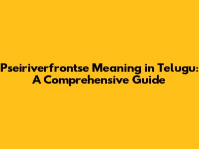 Pseiriverfrontse Meaning In Telugu: A Comprehensive Guide
