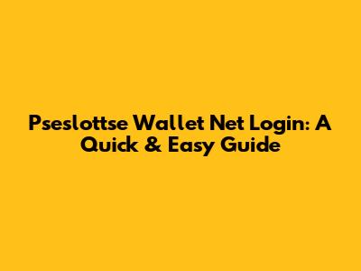 Pseslottse Wallet Net Login: A Quick & Easy Guide
