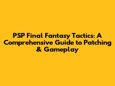 Hey guys! Ever get that itch for a classic tactical RPG experience? Look no further than Final Fantasy Tactics on the PSP! This game is an absolute gem, offering deep strategic gameplay, a compelling story, and a world filled with memorable characters. But let's be honest, sometimes getting everything to work just right can be a bit of a hassle. That's where we come in! This article is your go-to guide for everything Final Fantasy Tactics on the PSP, from understanding the game's brilliance to navigating the world of patches and enhancements.