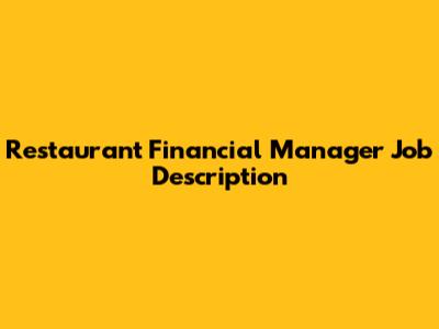 Restaurant Financial Manager Job Description