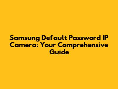 Samsung IP Camera: Default Password Reset Guide
