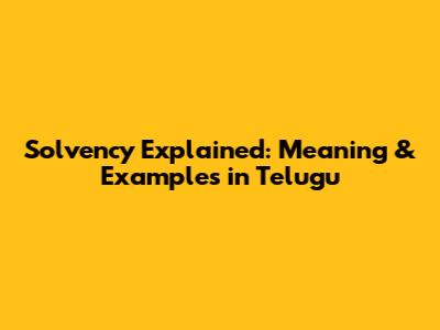 Solvency Explained: Meaning & Examples In Telugu