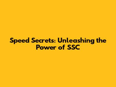 Speed Secrets: Unleashing The Power Of SSC