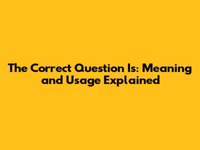 The Correct Question Is: Meaning And Usage Explained