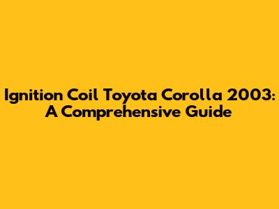 Hey guys! Are you having issues with your 2003 Toyota Corolla and suspect the ignition coil might be the culprit? You've come to the right place! This guide will walk you through everything you need to know about the ignition coil in your trusty Corolla, from understanding its function to diagnosing problems and even replacing it yourself. Let's dive in!