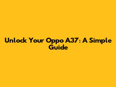 Unlock Your Oppo A37: A Simple Guide