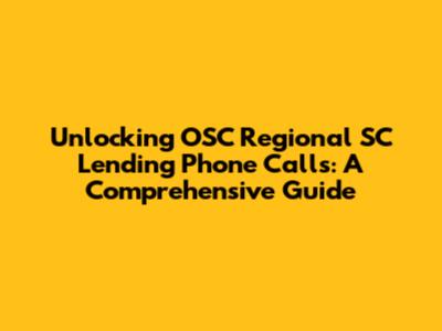 Unlocking OSC Regional SC Lending Phone Calls: A Comprehensive Guide