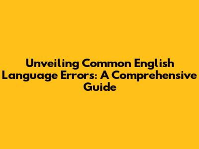Unveiling Common English Language Errors: A Comprehensive Guide