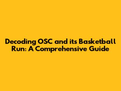 Unveiling OSC And Its Run In Basketball