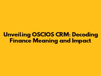 Unveiling OSCIOS CRM: Decoding Finance Meaning And Impact
