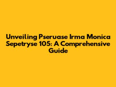 Unveiling Pseruase Irma Monica Sepetryse 105: A Comprehensive Guide