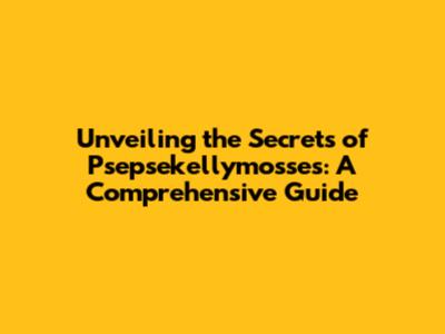 Unveiling The Secrets Of Psepsekellymosses: A Comprehensive Guide